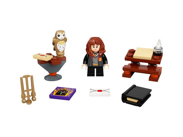 El sitio web The Brick Fan reporta que “hay un nuevo polybag [o paquete armable en bolsa de plástico] de LEGO Harry Potter que acaba de aparecer en la página [web] de instrucciones de armado de LEGO.” El paquete se llama ‘Pupitre de Hermione’, tiene el número de serie 30392, y contiene 31 piezas (entre las cuales están la figura LEGO de Hermione Granger, una lechuza, y un cromo de rana de chocolate).